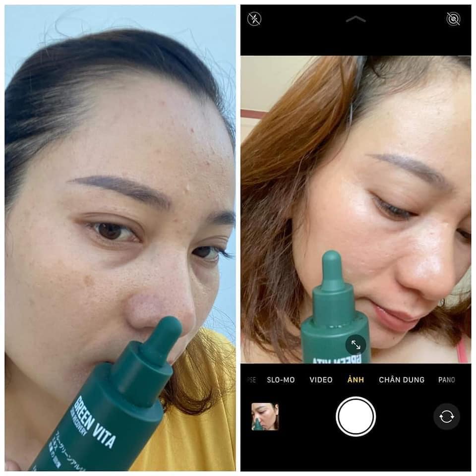 Serum siêu vi tảo green vita với tinh chất của vi tảo Nhật Bản, các tế bào chết, chân nám, chân mụn, tàn nhang sẽ được đẩy từ tầng đáy lên bề mặt da. Serum siêu vi tảo Green Vita sẽ thay đổi lớp biểu bì cũ, thay bằng lớp da hoàn toàn mới, lấy lại vẻ đẹp cho làn da của bạn.