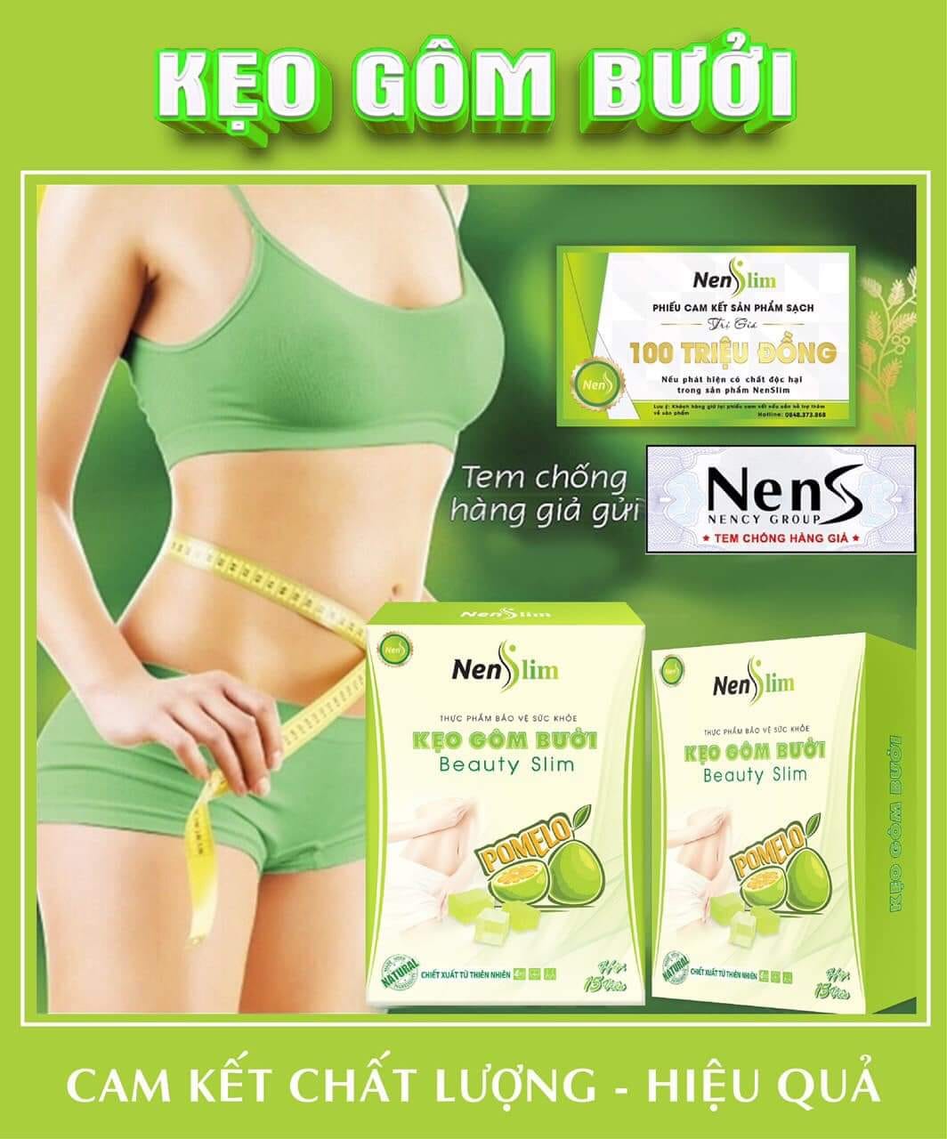 Kẹo gôm bưởi giảm cân Nenslim có hại không Kẹo gôm bưởi là một trong những sản phẩm an toàn, đã được hơn 1,5 triệu chi em tin dùng từ khi ra mắt cho đến nay. Sản phẩm được sản xuất theo quy trình khép kín, được Y tế kiểm gắt gao nên không gây hại, tác dụng phụ cho người dùng.