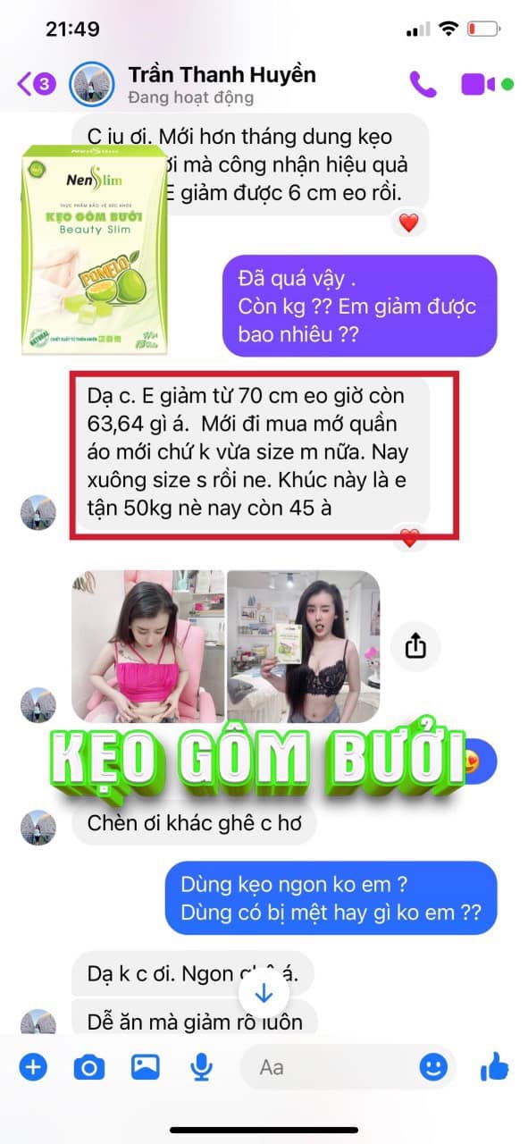 Một số chị em review sau khi sử dụng kẹo gôm bưởi giảm cân nhà Nenslim