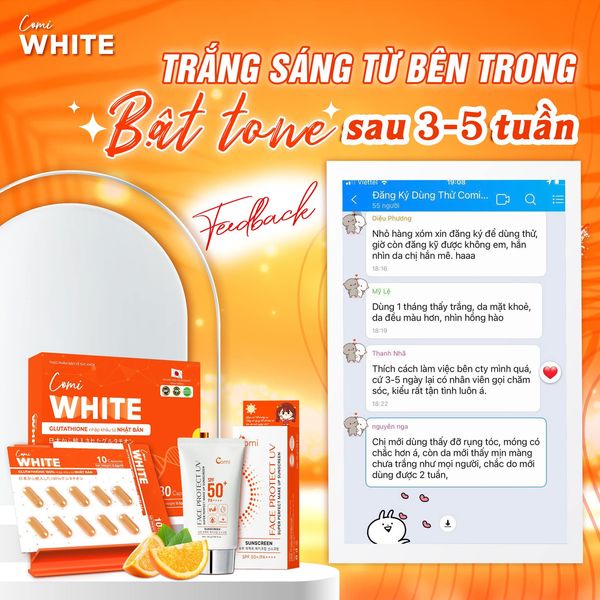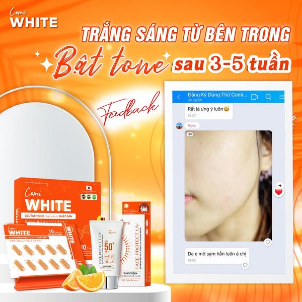 Viên uống trắng da Comi White được nhiều người truyền tai nhau là sản phẩm chất lượng và uy tín, nếu kiên trì sử dụng sẽ đạt được hiệu quả tối đa. Sản phẩm chứa các dưỡng chất làm trắng, dưỡng da từ thiên nhiên nên rất an toàn.