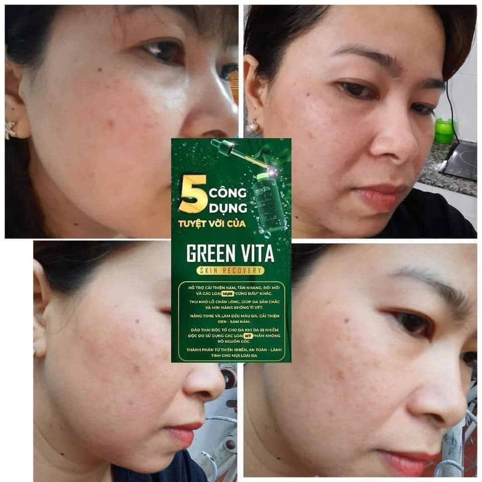 Với cơ chế tác động đẩy độc tố, chân nám, chân mụn, chân tàn nhang,...lên bề mặt da, sau đó bong đi lớp tế bào chết bên ngoài kèm theo độc tố được đẩy lên. Mang lại làn da mịn màng và trắng sáng như da me bé. Serum tái tạo da Green Vita hoàn toàn không gây tình trạng mỏng da như những sản phác trên thị trường. Serum thẩm thấu và tác động sâu dưới lớp biểu bì giảm đáng kể các sắc tố đen và ngăn chặn sự hình thành vết nám thâm đồng thời kích thích tăng tổng hợp collagen, kháng viêm, se khít lỗ chân lông...
