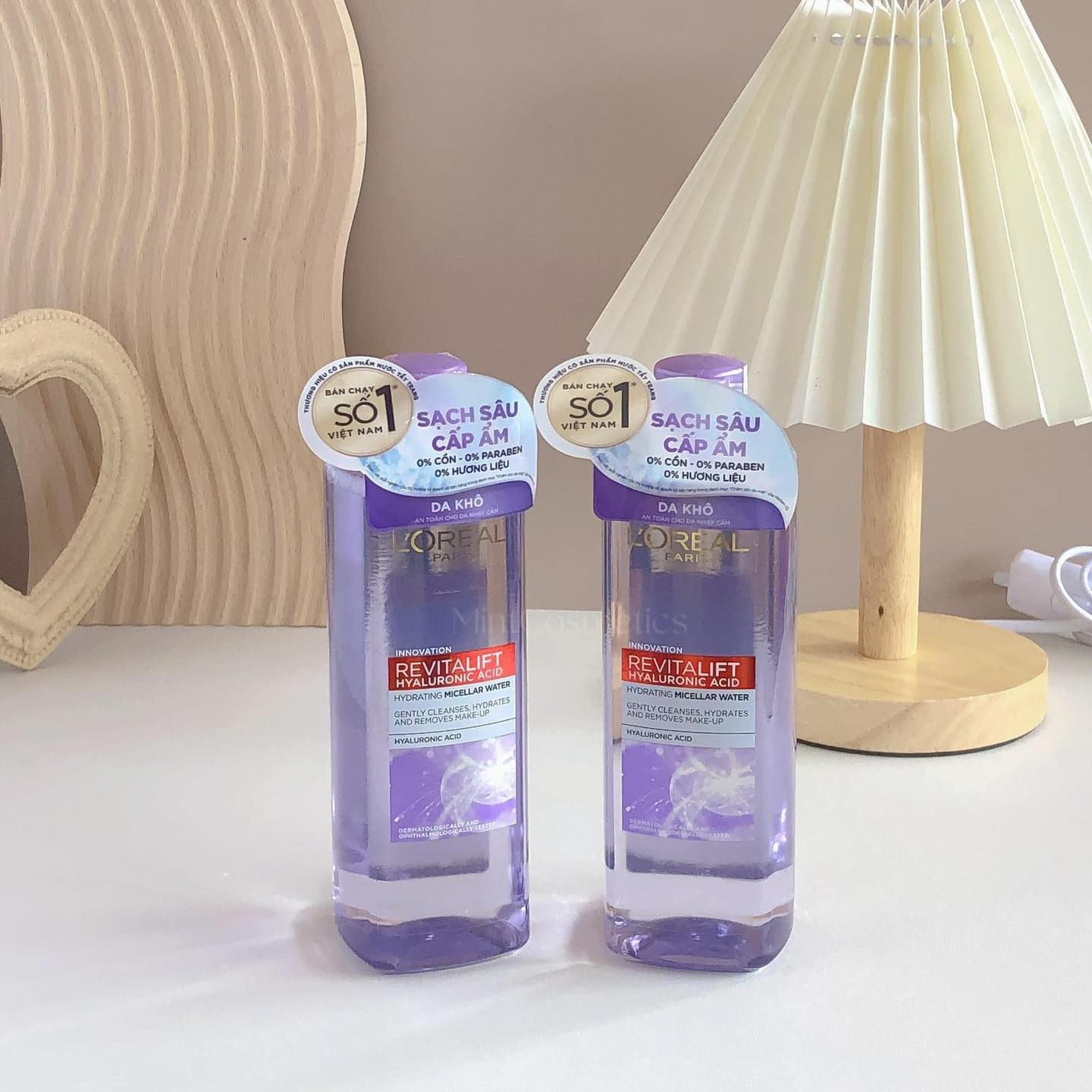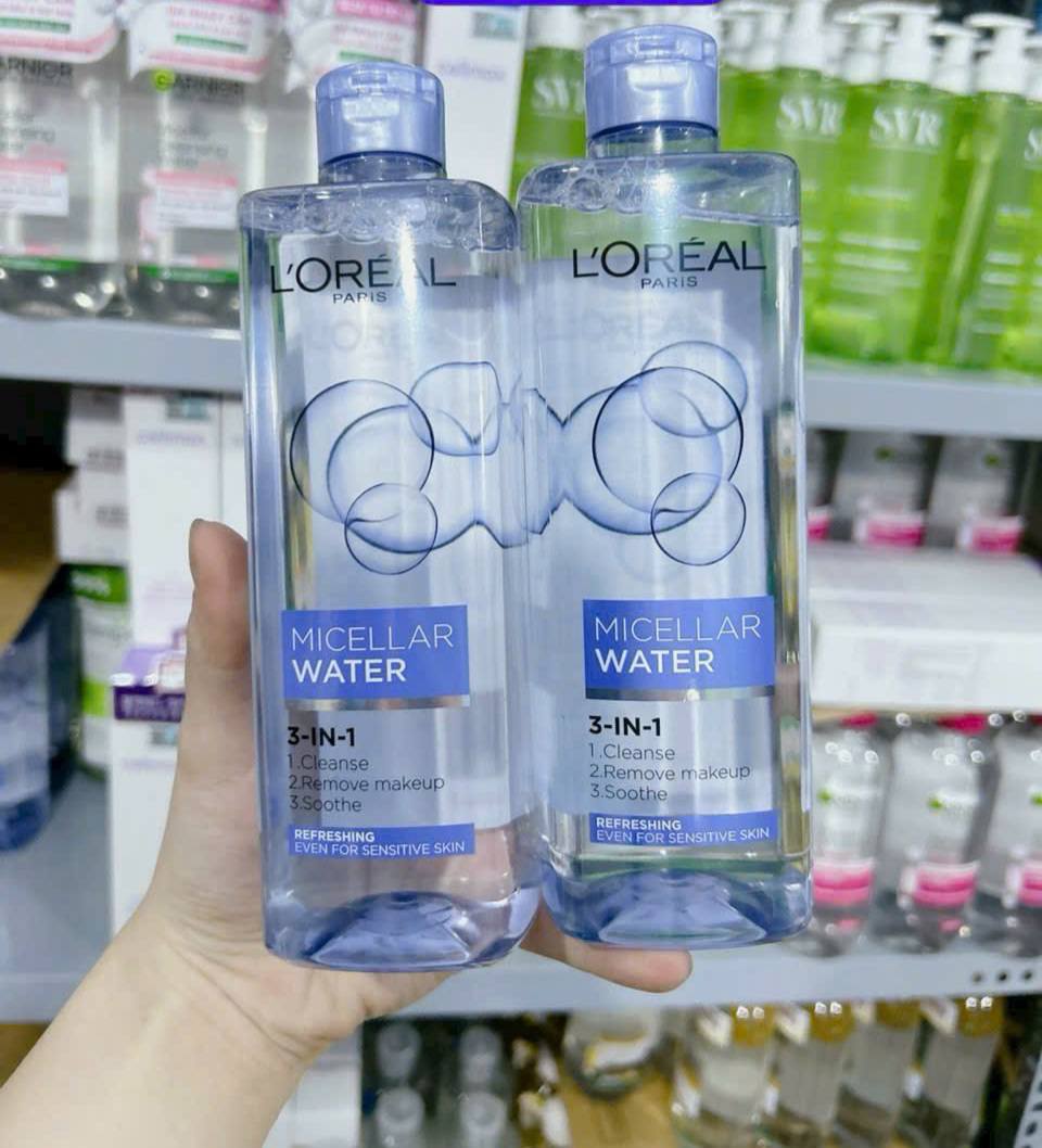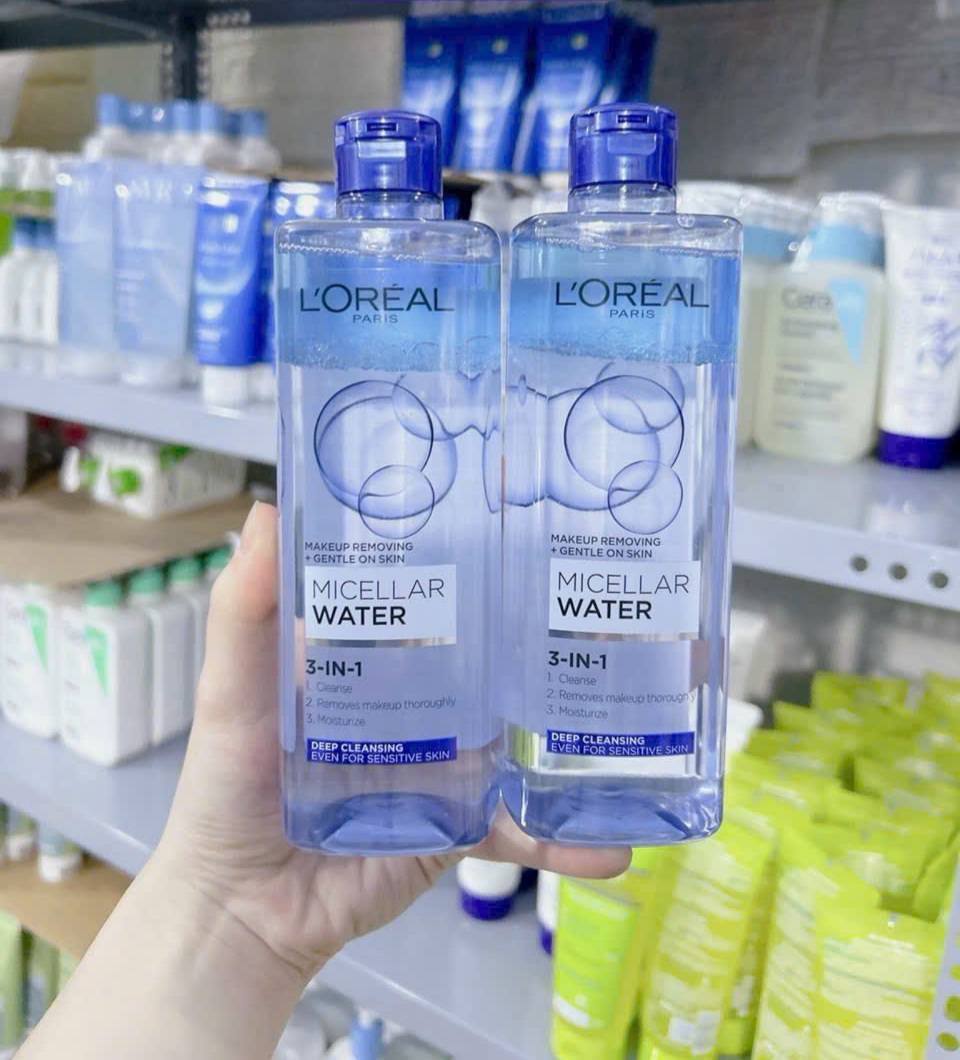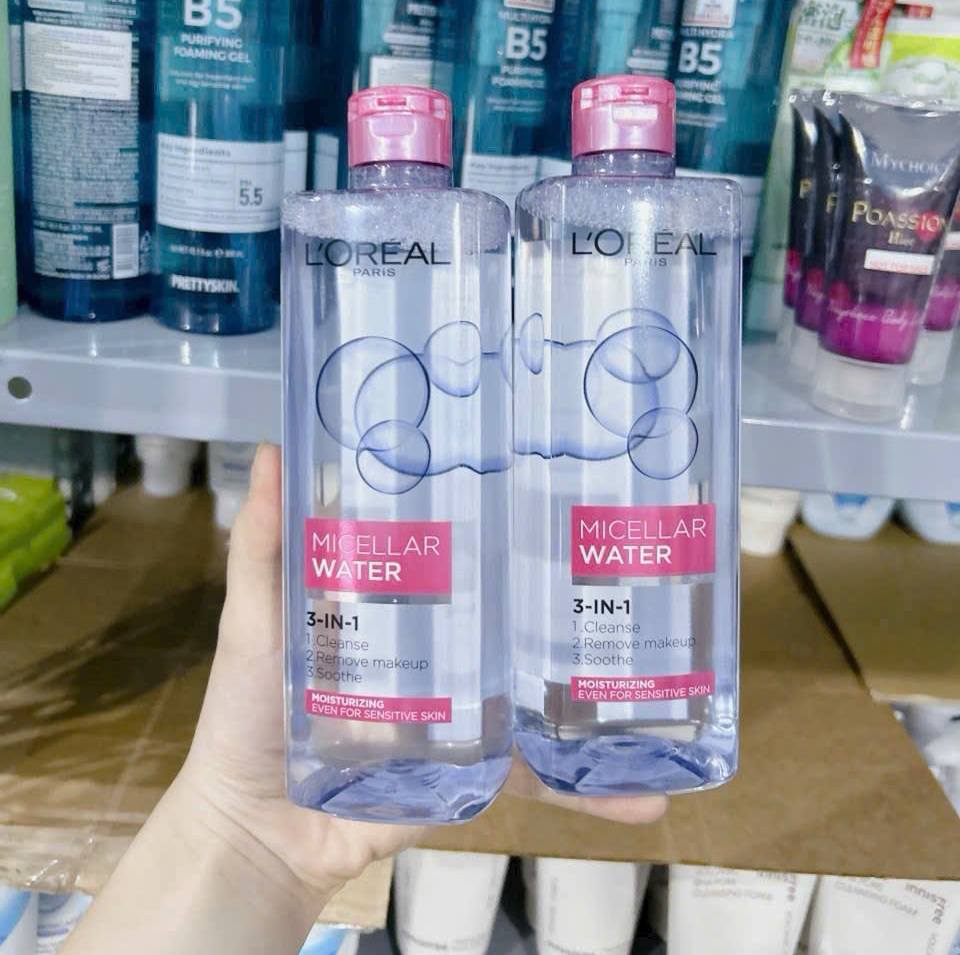 1. L’Oreal Micellar Water 3-in-1 (Nắp xanh dương nhạt) – Phù hợp cho mọi loại da