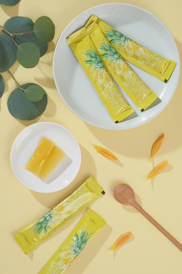 Chiết xuất trái dứa: có thành phần fructozo – giúp ngăn cản sự thèm ăn, giúp cơ thể đốt cháy calo; enzym tiêu hóa – hỗ trợ dạ dày, giảm chứng ợ nóng, đầy bụng, giảm mỡ bụng. Vì vậy, ăn dứa vừa giúp tiêu hóa tốt, vừa tạo cảm giác no lâu, rất tốt cho người muốn giảm cân.