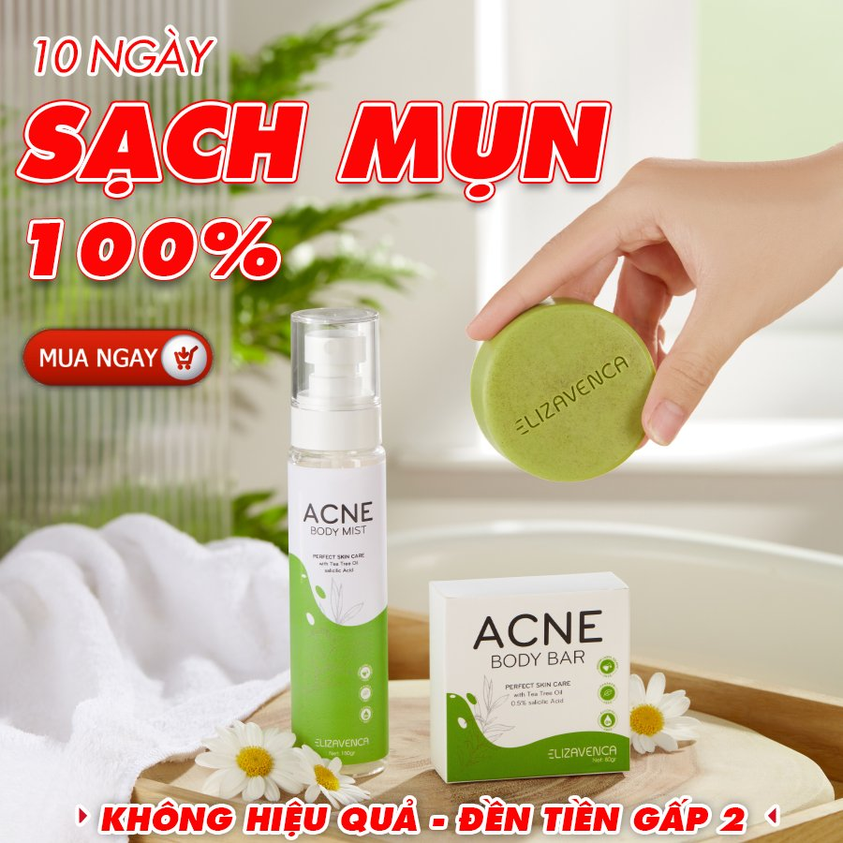 BỘ ĐÔI XỊT MỤN LƯNG VÀ XÀ PHÒNG GIẢM MỤN LƯNG, VIÊM NANG LÔNG ELIZAVENCA