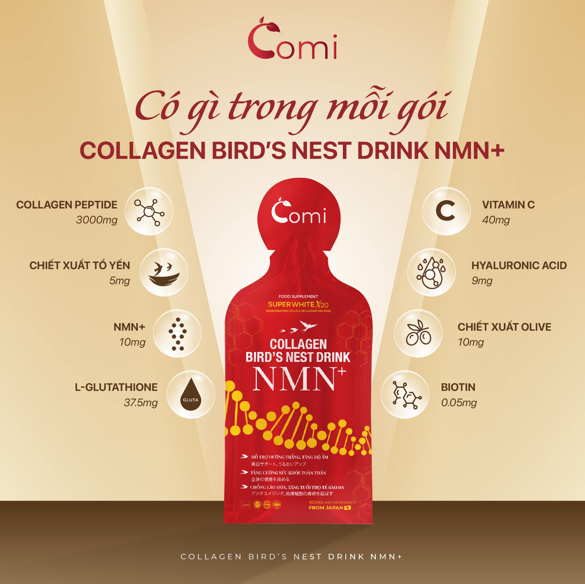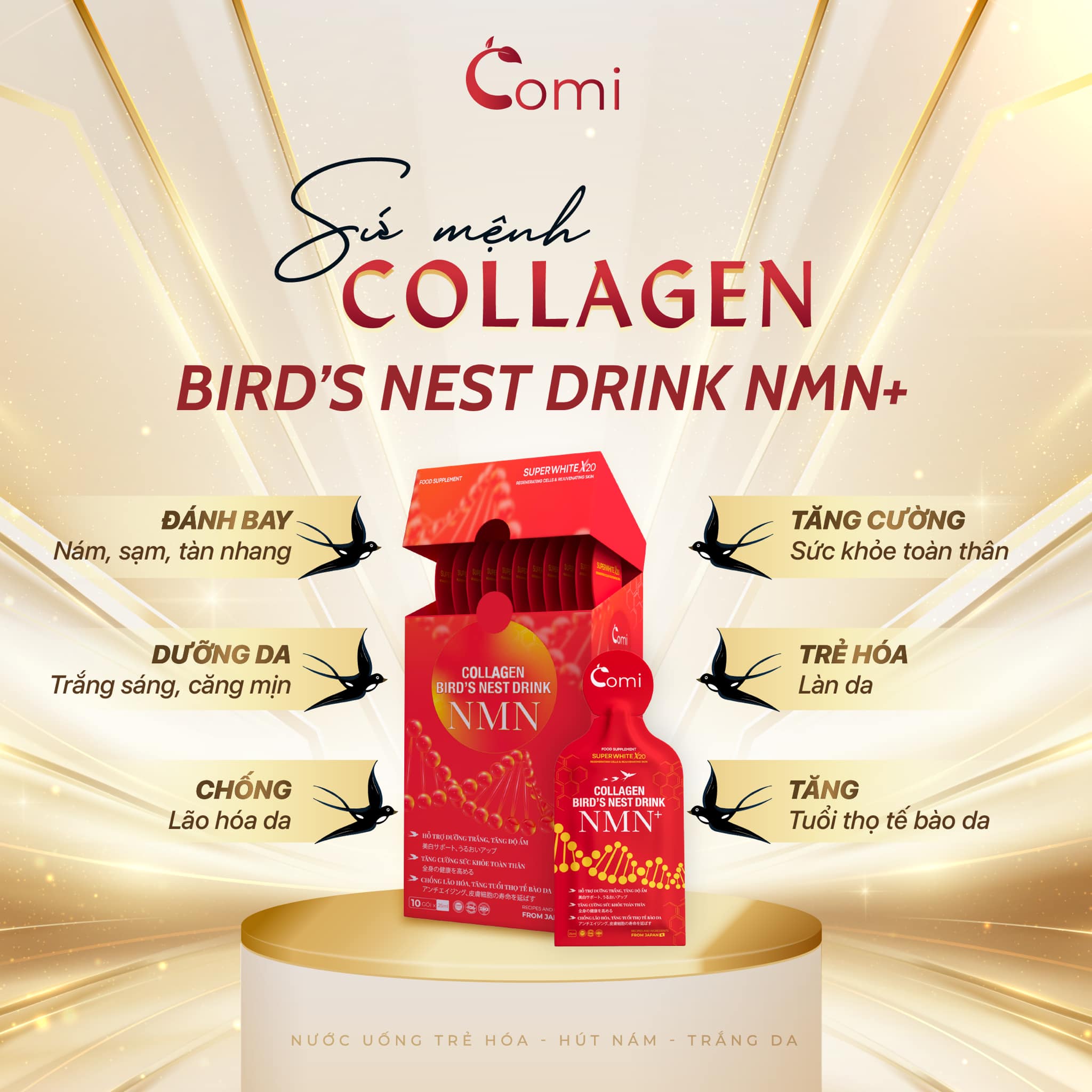 Collagen Yến NMN Comi Bird's Nest Drink NMN+ Nhật Bản bổ sung 2 thành phần đang HOT nhất hiện nay & ra đời COLLAGEN YẾN NMN +