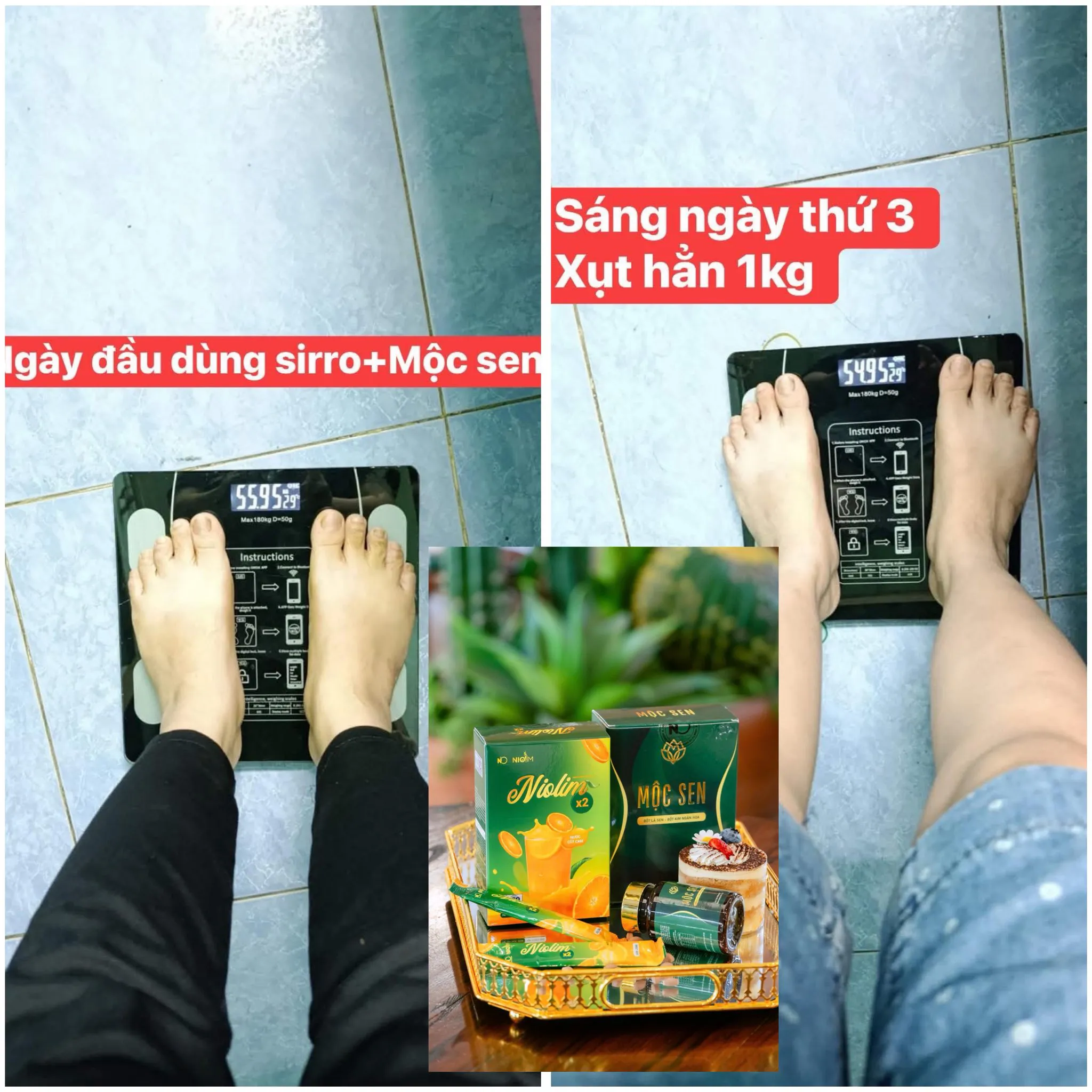 • Sau đó: 1 gói nio slim x2/ngày kết hợp 2 viên mộc slim trước ăn sáng 15-30 phút