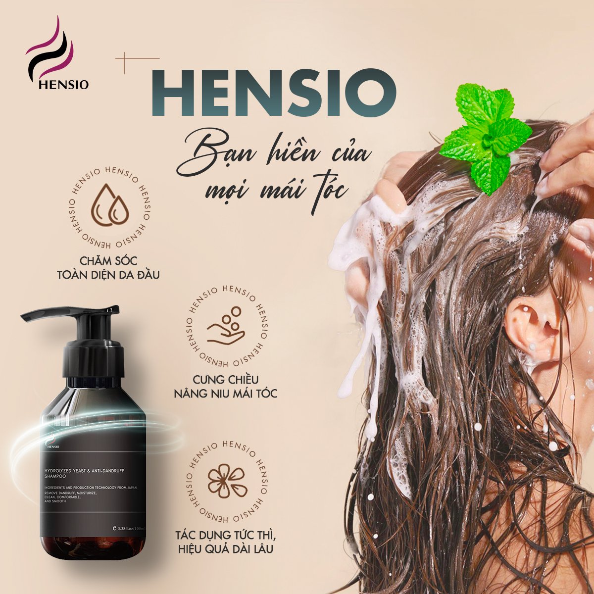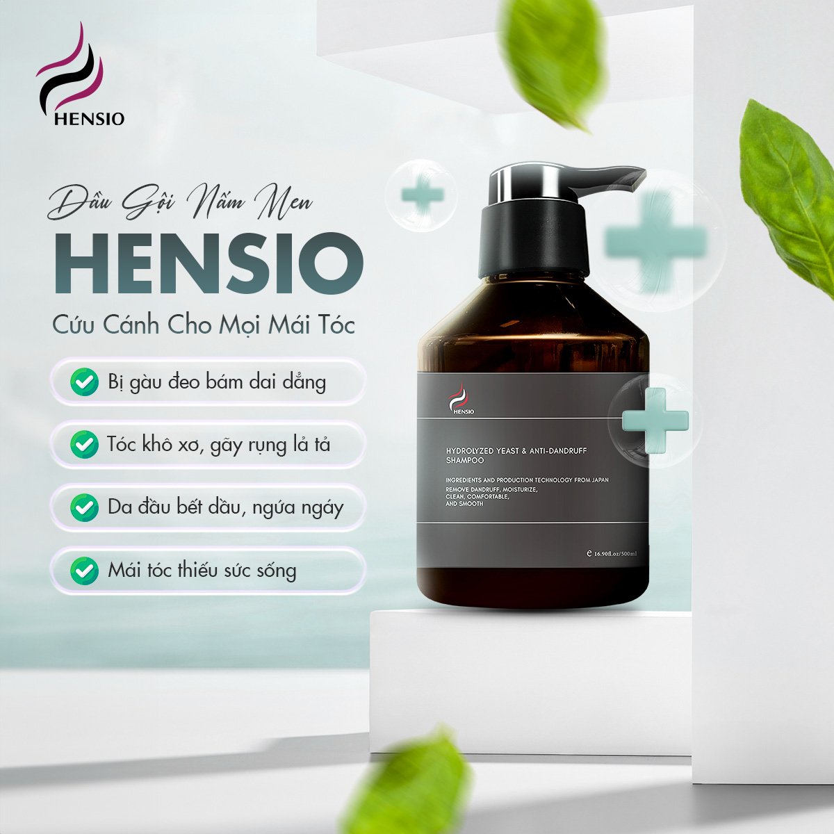 Dầu gội nấm men Hensio chính là cứu tinh cho mái tóc đang gặp tình trạng bất ổn này. Với công thức nấm men đột phá kết hợp với chiết xuất cây phỉ Bắc Mỹ cùng bạc hà và chiết xuất thực vật, dầu gội sẽ loại sạch vảy gàu nấm bám sâu vào chân tóc, bổ sung keratin protein cho tóc và da đầu, dưỡng cho da đầu thông thoáng, sạch sẽ, hạn chế rụng tóc và kích thích mọc tóc mới chắc khỏe, mượt mà, óng ả.