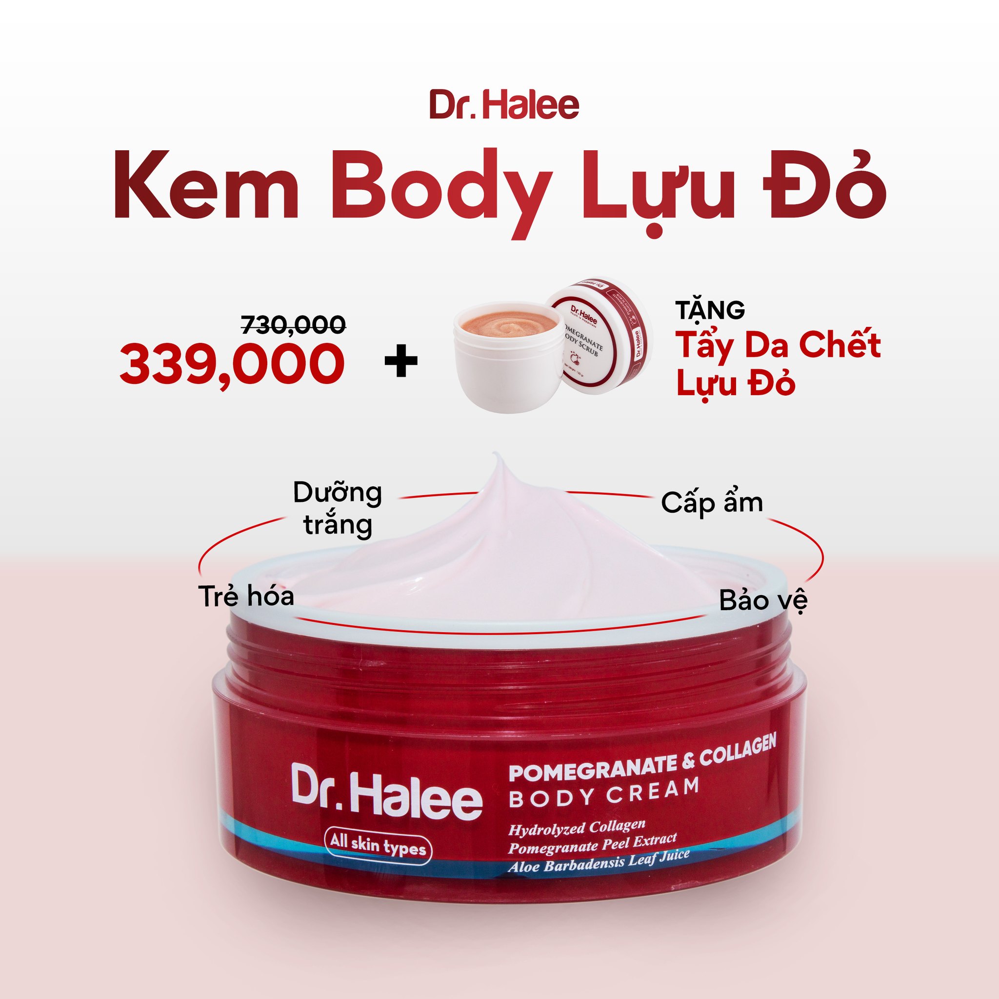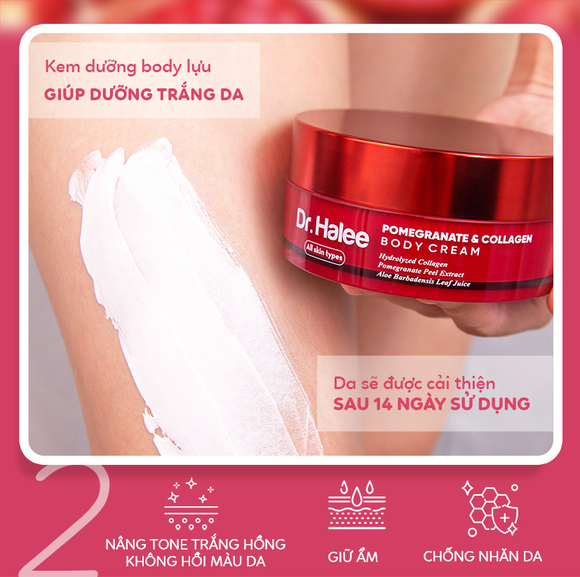 Công Dụng Kem Body Dưỡng Trắng Da Lựu Đỏ Dr Halee