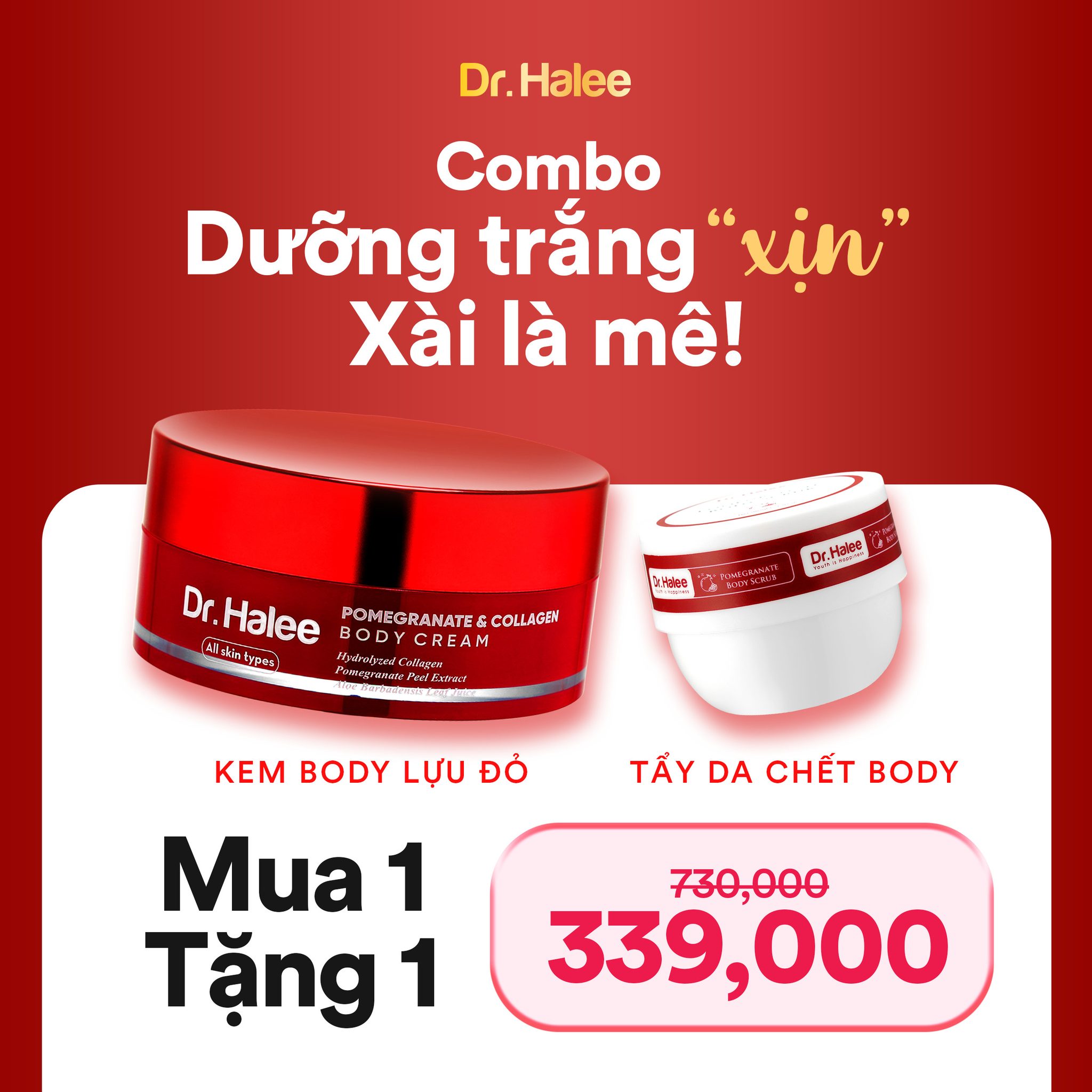 Kem Body Dưỡng Trắng Da Lựu Đỏ Dr Halee