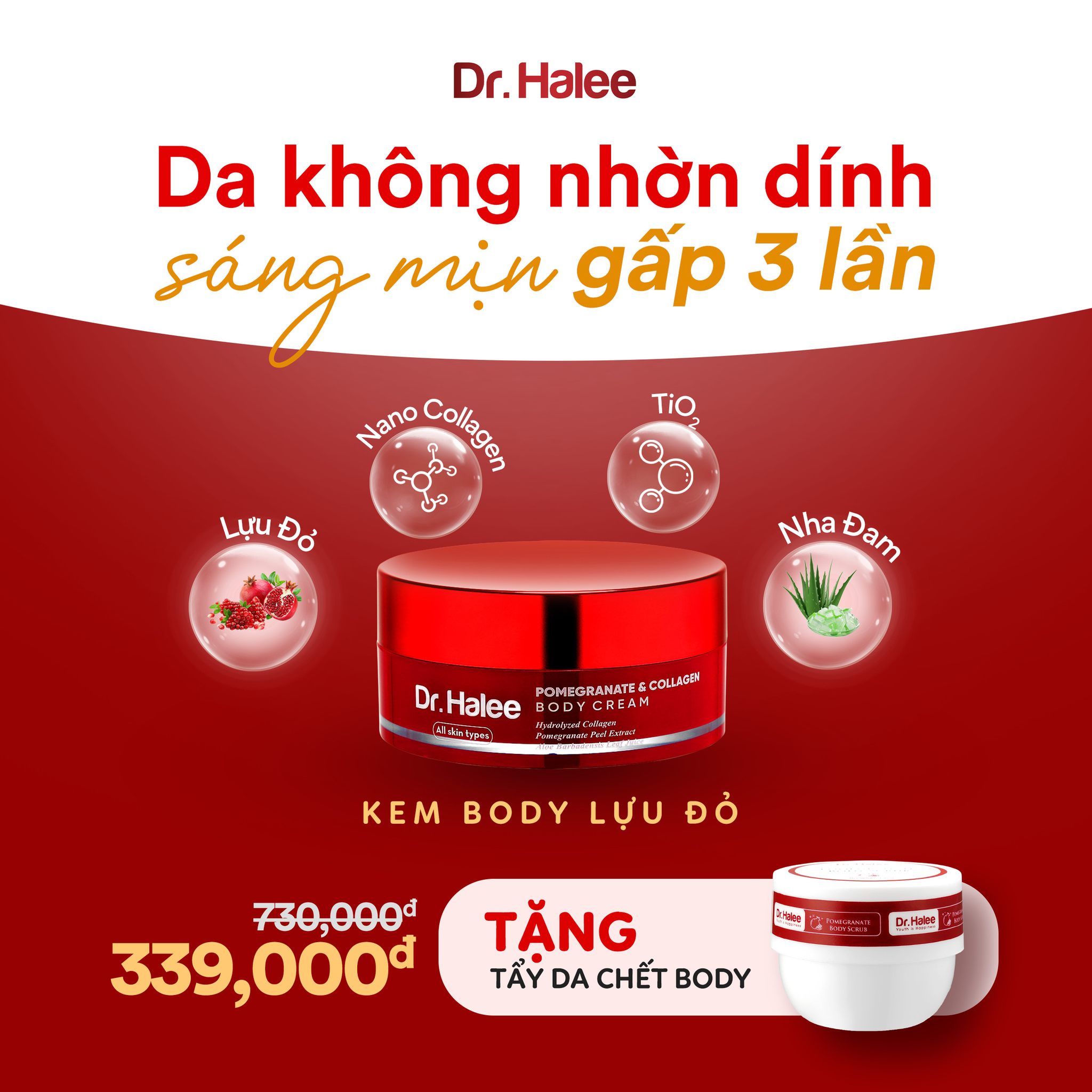 KEM BODY DƯỠNG TRẮNG DA LỰU ĐỎ DR HALEE