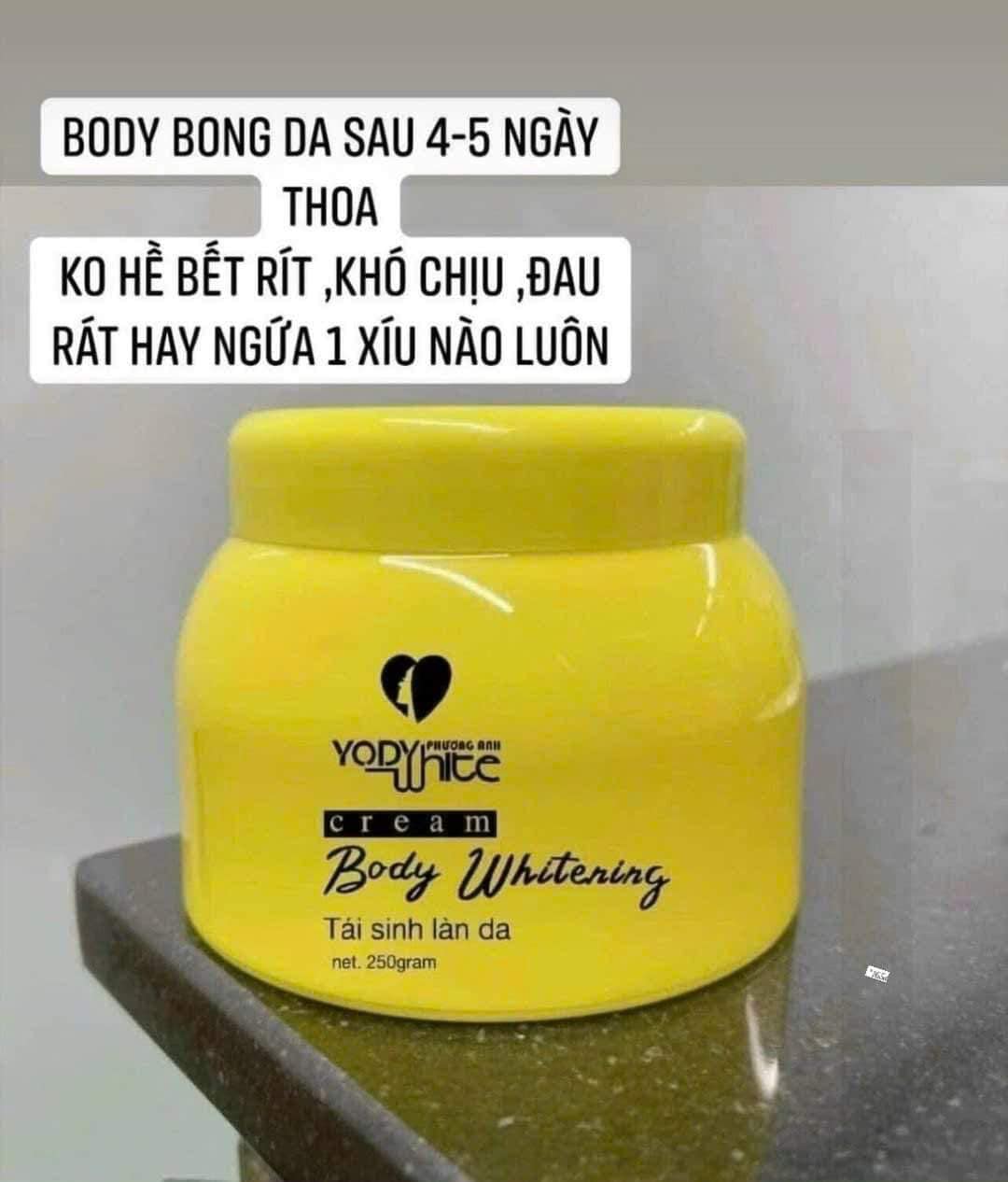 Chị em nào da khô mốc, dưỡng kem body mãi không trắng, da chai lì dày lâu năm, thâm nách, thâm khuỷu tay, đầu gối, bẹn, mông, thâm do mụn để lại thì Kem Body tái sinh da Yody Phương Anh nhà em là chân ái giải quyết được hết luôn nha. Vừa dưỡng trắng vừa kích bong thay da tự nhiên theo chu kì, kích thích sản sinh tế bào mới hấp thụ kem dưỡng tốt hơn. Dưỡng cấp ẩm trực tiếp trên phần da đang bong bên sẽ không có tình trạng "KHÔ - NÓNG RÁT - NGỨA" mà chỉ có hiện tượng "CÀNG BONG CÀNG TRẮNG" !