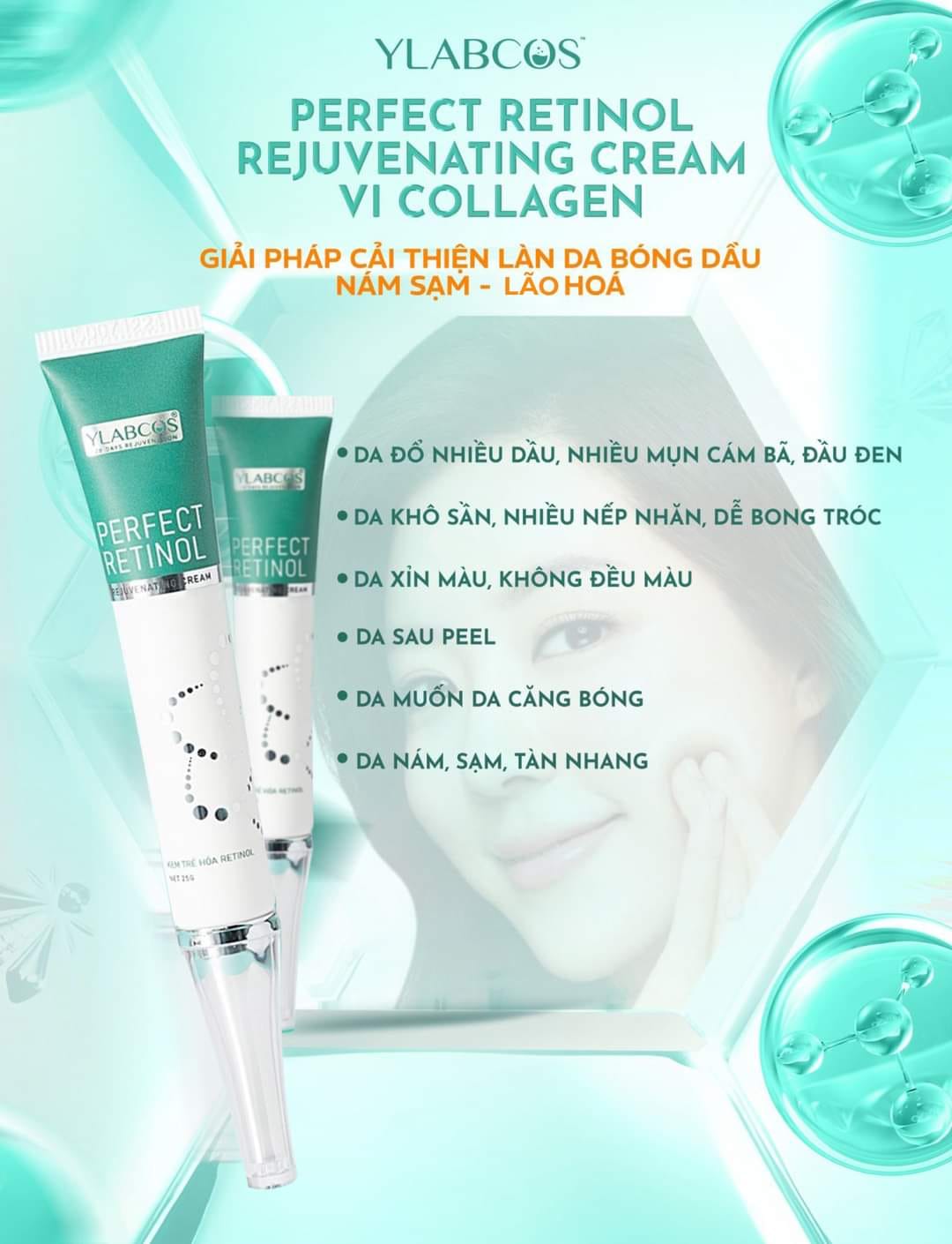 Sản phẩm Kem Dưỡng Căng Bóng Vi Collagen Dr Lacir Perfect Retinol Rejuvenating Cream Ylabcos với công thức đột phá trong việc dưỡng trắng căng bóng và ngăn ngừa lão hóa da hiệu quả từ sự kết hợp hoàn hảo của các thành phần tốt nhất như: ACB Fruit Mix, Retinol, BHA, Collagen Thuỷ Phân, Vitamin B5… tác động tầng sâu và toàn diện giúp: