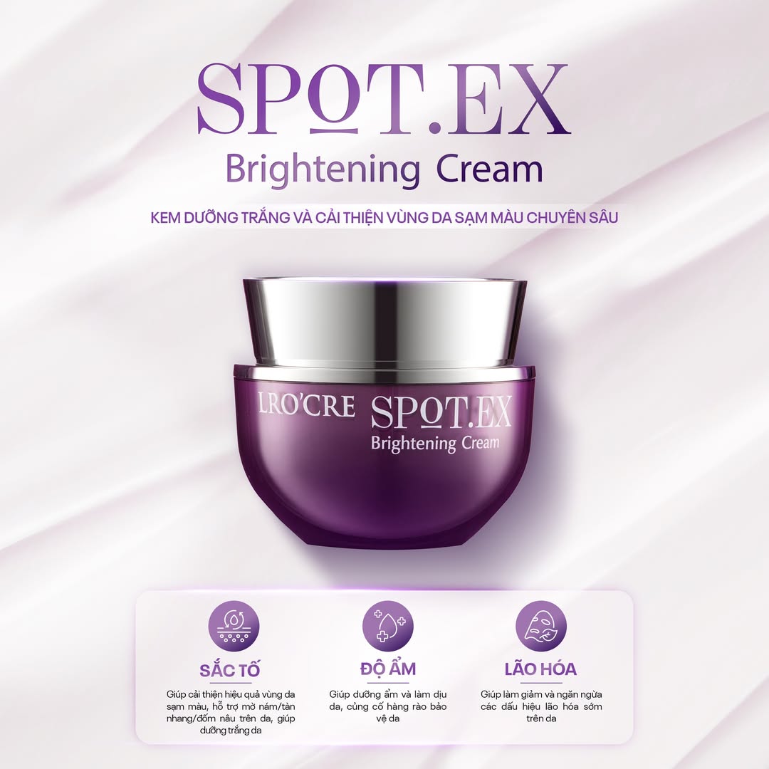 Làn da sạm màu, xuất hiện vết thâm, nám hay tàn nhang thường khiến chị em mất tự tin. Spot.EX Brightening Cream ra đời như một giải pháp dưỡng trắng và cải thiện sắc tố da an toàn, giúp khôi phục vẻ tươi sáng, rạng rỡ cho làn da. Với công thức chứa nhiều hoạt chất dưỡng trắng tiên tiến, sản phẩm phù hợp cho cả da nhạy cảm và da có khuyết điểm sắc tố.