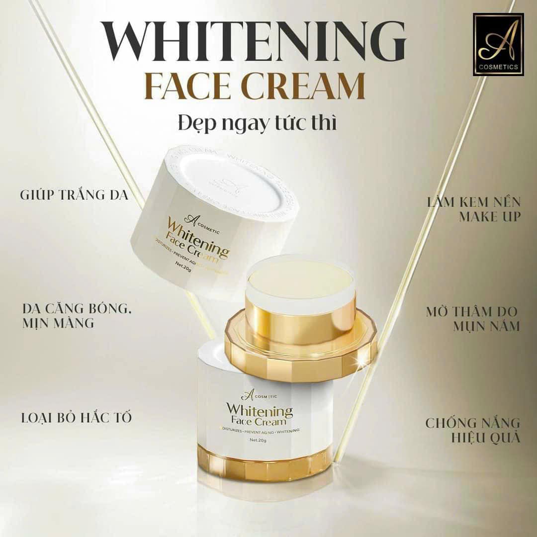 Kem Face Pháp A Cosmetics là sản phẩm kem dưỡng da giúp làm mờ các vết thâm do mụn, làm đều màu da, xóa mờ thâm nám và dưỡng trắng da rất tốt đang được các chị em tin dùng hiện nay.