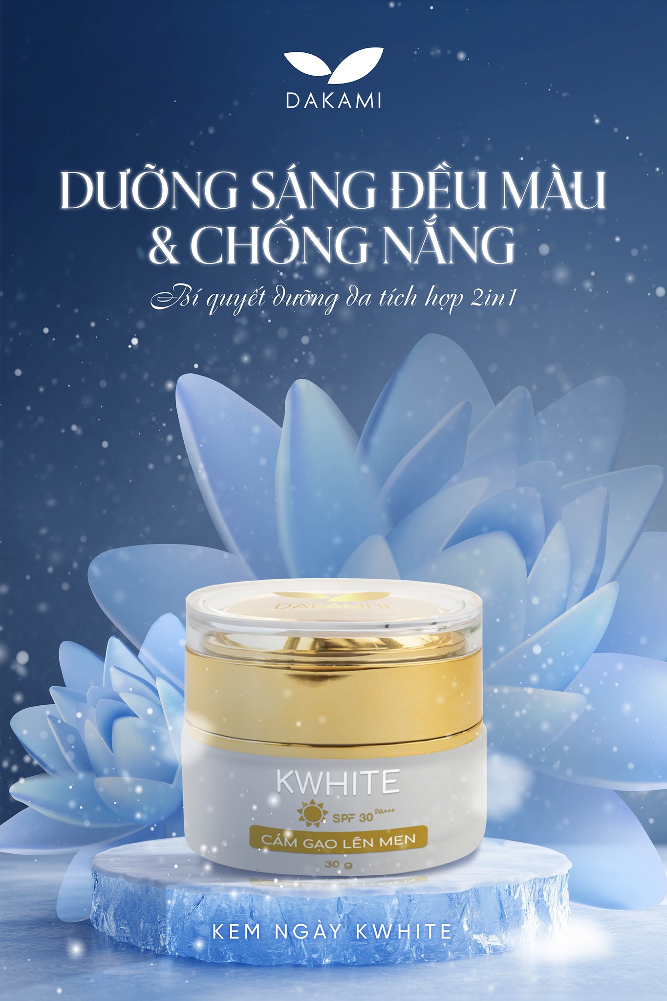 • Kem Mờ Nám Trắng Da Dakami K White chống lão hóa, tăng độ đàn hồi da nhờ chất chống oxy hóa và các chiết xuất hỗ trợ sản sinh collagen/elastin, giúp giảm nếp nhăn, da săn chắc hơn.