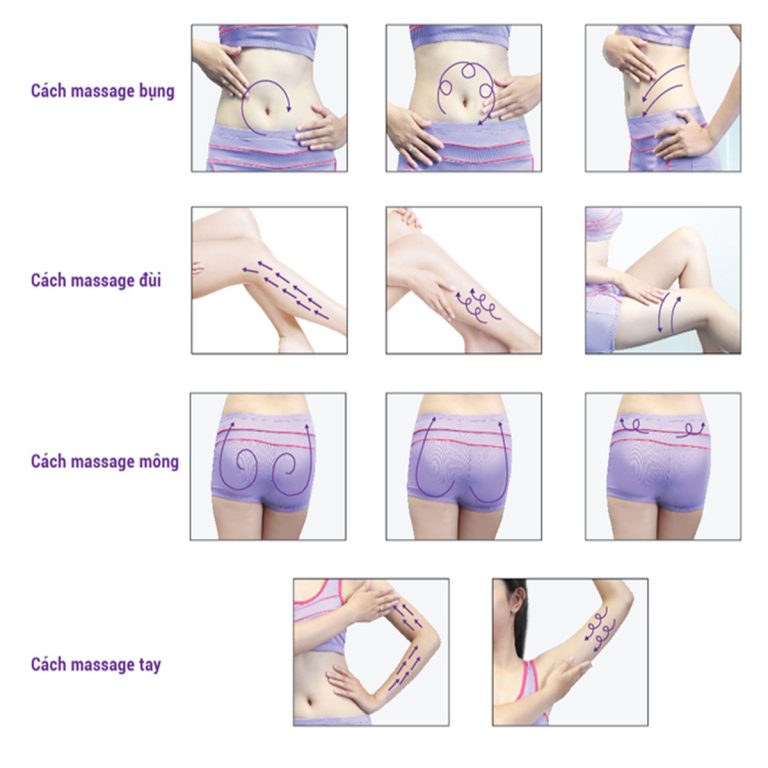 - Massage hàng ngày đều đặn lên đùi, hông và bụng