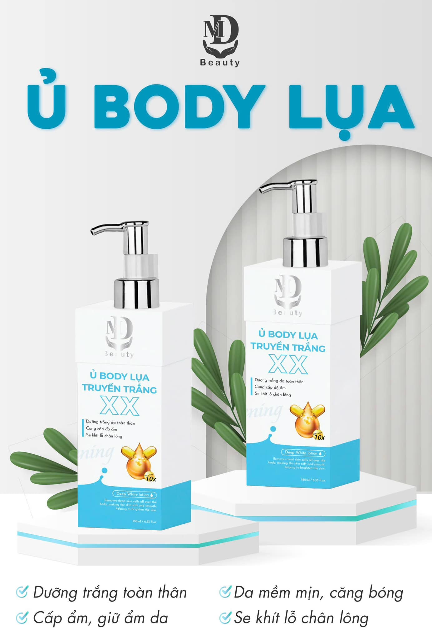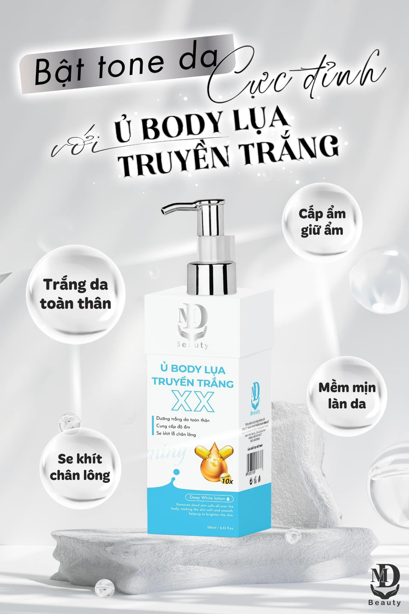 Kem Ủ Trắng Body Lụa Truyền Trắng là một phương pháp làm trắng da toàn thân phổ biến tại các spa hoặc được thực hiện tại nhà bằng cách sử dụng các sản phẩm chuyên biệt. Quy trình này thường bao gồm việc thoa các sản phẩm chứa các thành phần làm trắng, dưỡng ẩm, và tái tạo da, giúp làn da trở nên mịn màng và trắng sáng hơn.