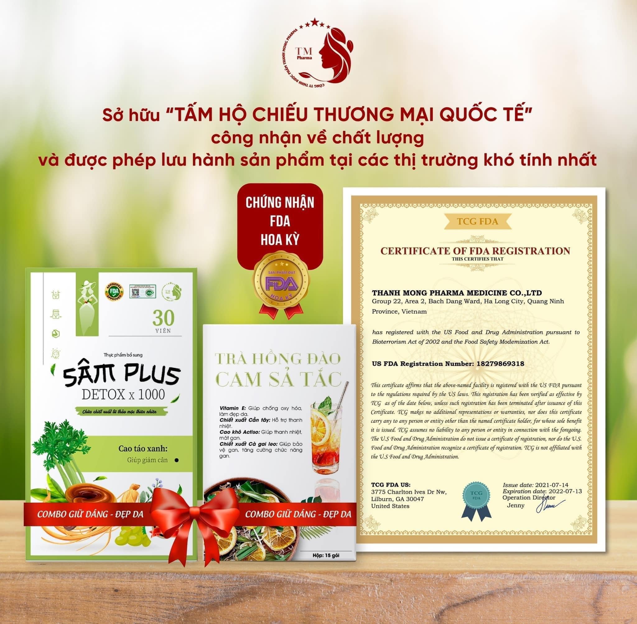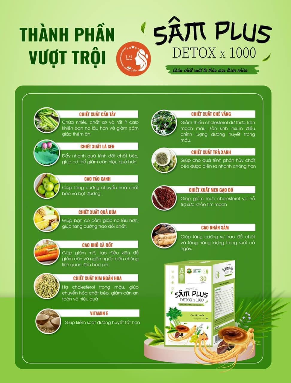 Một trong những sản phẩm hỗ trợ giảm cân đáp ứng đầy đủ tiêu chí đó phải kể đến Sâm Plus detox x1000 của Thanh Mong Pharma. Sản phẩm có thành phần chiết xuất từ thảo mộc thiên nhiên, có giấy tờ cấp phép mà các chị em có nhu cầu giảm cân, gọn dáng nên thử.