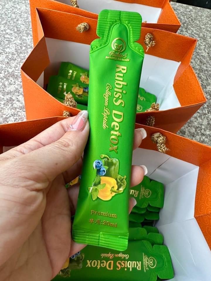 Rubiss Detox Collagen Peptide ra đời là sự kết hợp độc đáo giữa sản phẩm Rubiss Detox được bổ sung thành phần Collagen. Rubiss Detox Collagen Peptide có nguồn gốc từ thiên nhiên chính bởi vậy rất an toàn cho người dùng, không có bất kỳ tác dụng phụ nào. Không những vậy, với Rubiss Detox Collagen Peptide bạn còn nhận thấy điều khác biệt đó là bổ sung lượng collagen cho da.