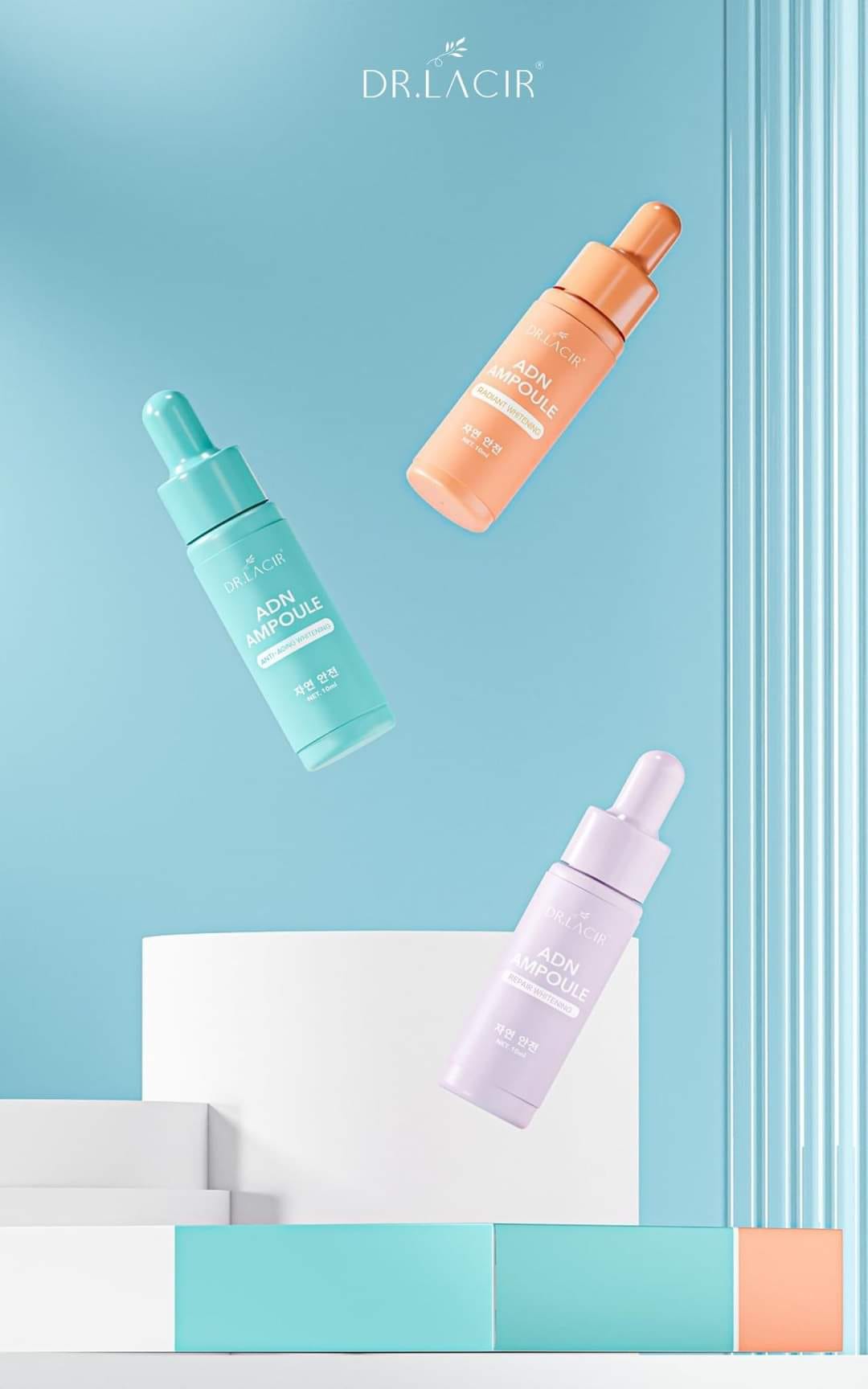 Hiểu được điều đó, Serum 3 Adn Ampoules Dr Lacir được thiết kế dạng combo, bên trong bao gồm 3 chai serum với các nhóm công dụng riêng biệt.