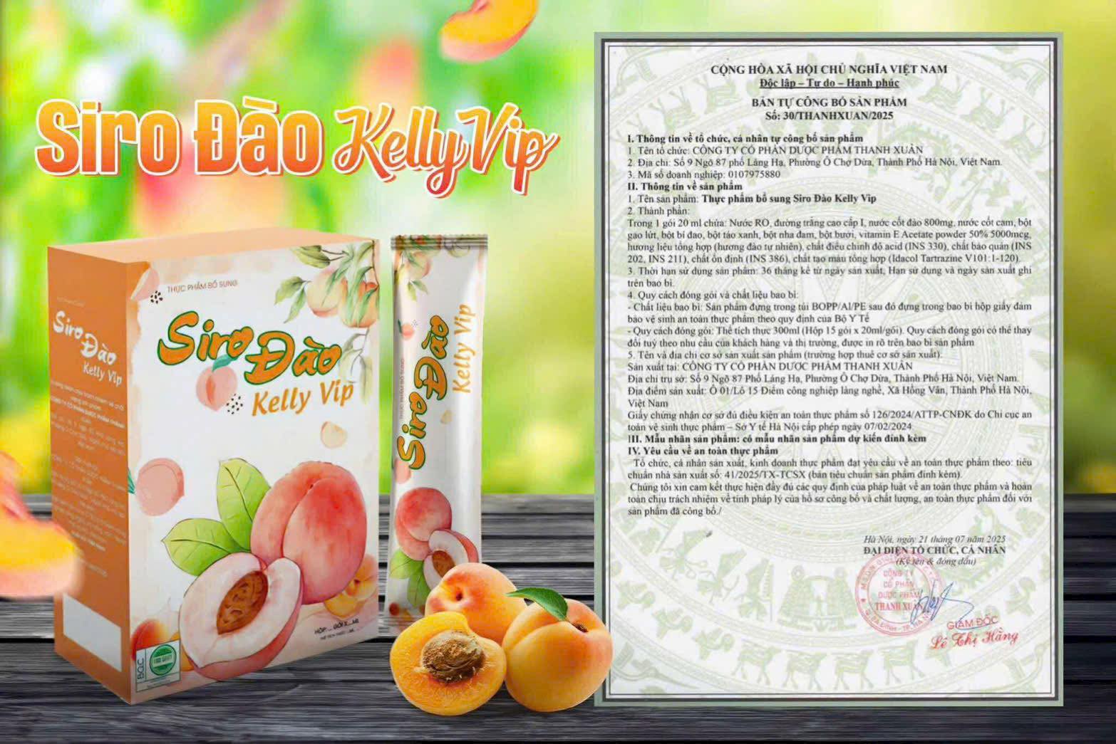 Thành phần Siro Đào Giảm Cân Kelly Vip