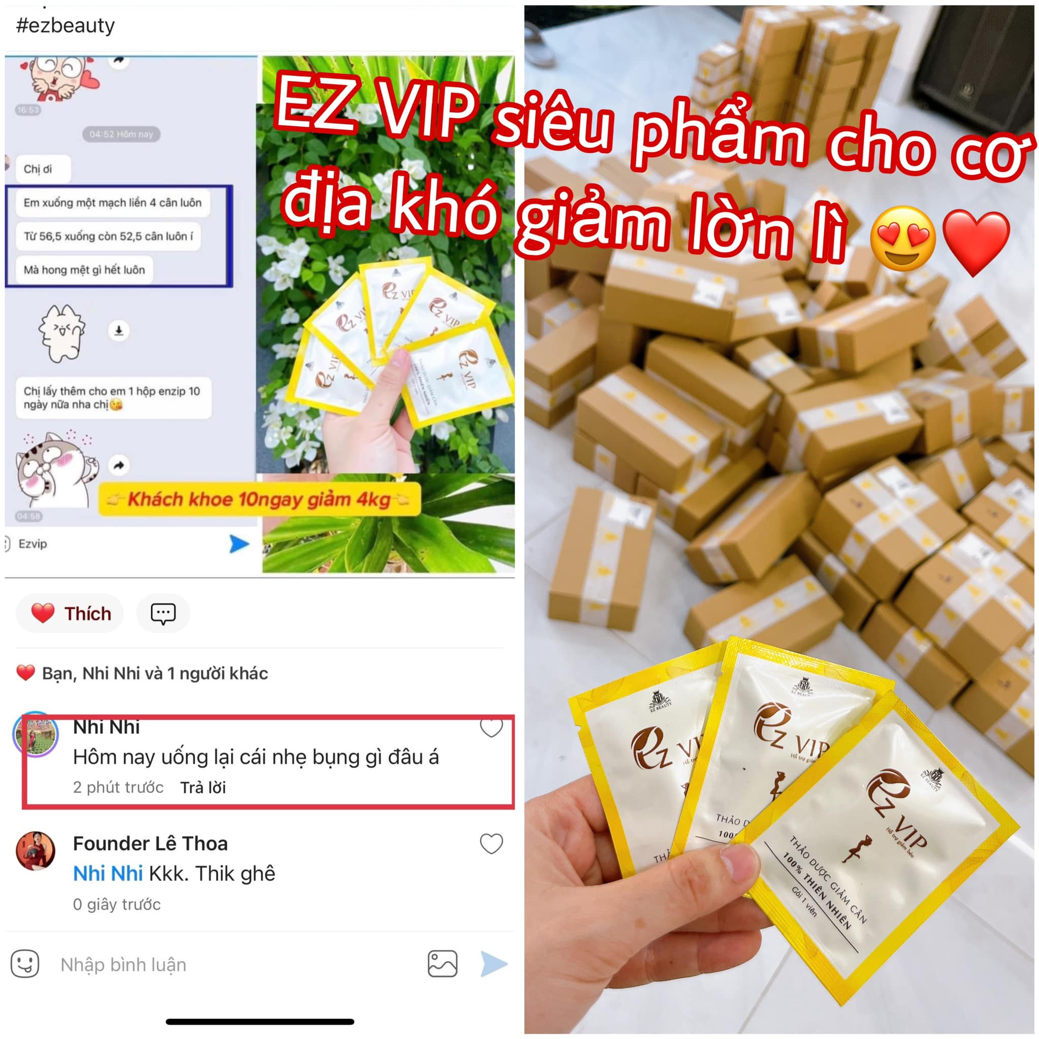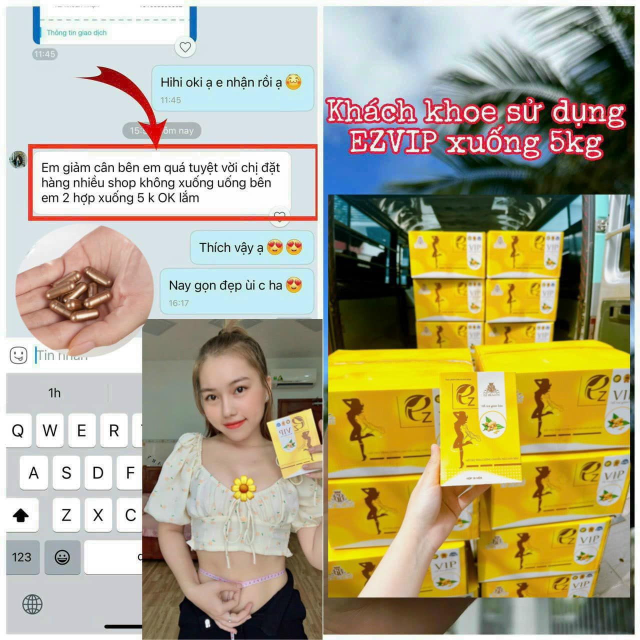 Viên Uống Giảm Cân EZ Vip là sản phẩm viên uống giảm cân được ra mắt bởi Công Ty Tnhh Ez Beauty. Sau khi trải qua kiểm định nghiêm ngặt của cơ quan kiểm định và bộ y tế cho ra sản phẩm EZ VIP chất lượng, an toàn và hiệu quả. Với những thành phần hoàn toàn từ thiên nhiên như: Chè vằng, Bưởi, Nghệ, Kim ngân hoa, lá sen..v..v. Cam kết với liệu trình 10 ngày giảm từ 3-5kg dành cho cơ địa khó giảm , lờn thuốc đã dùng nhiều loại sản phẩm giảm cân khác nhưng không giảm. (lờn 3-7 loại trà, thuốc thảo dược, kẹo, cafe, bột….).