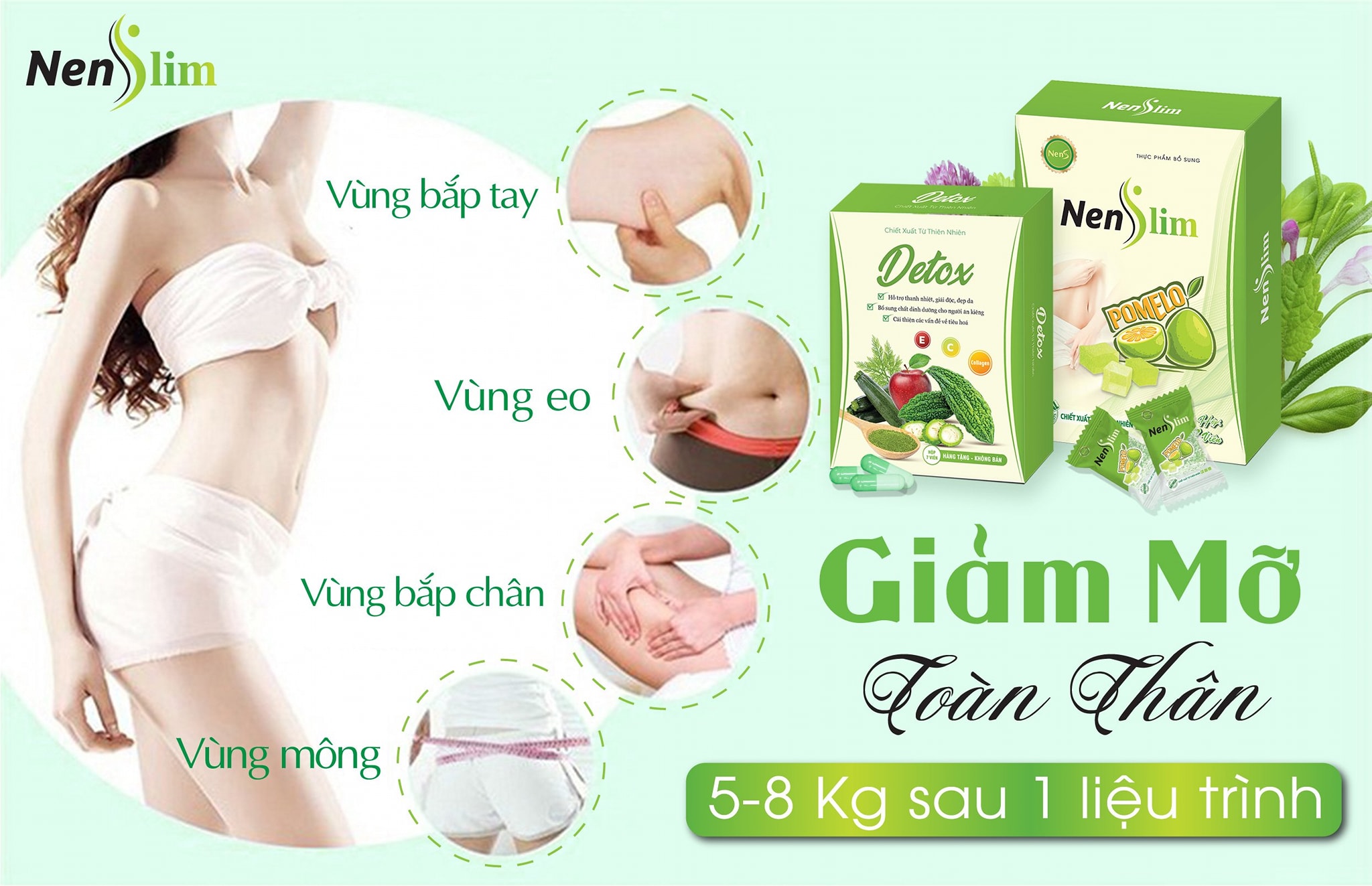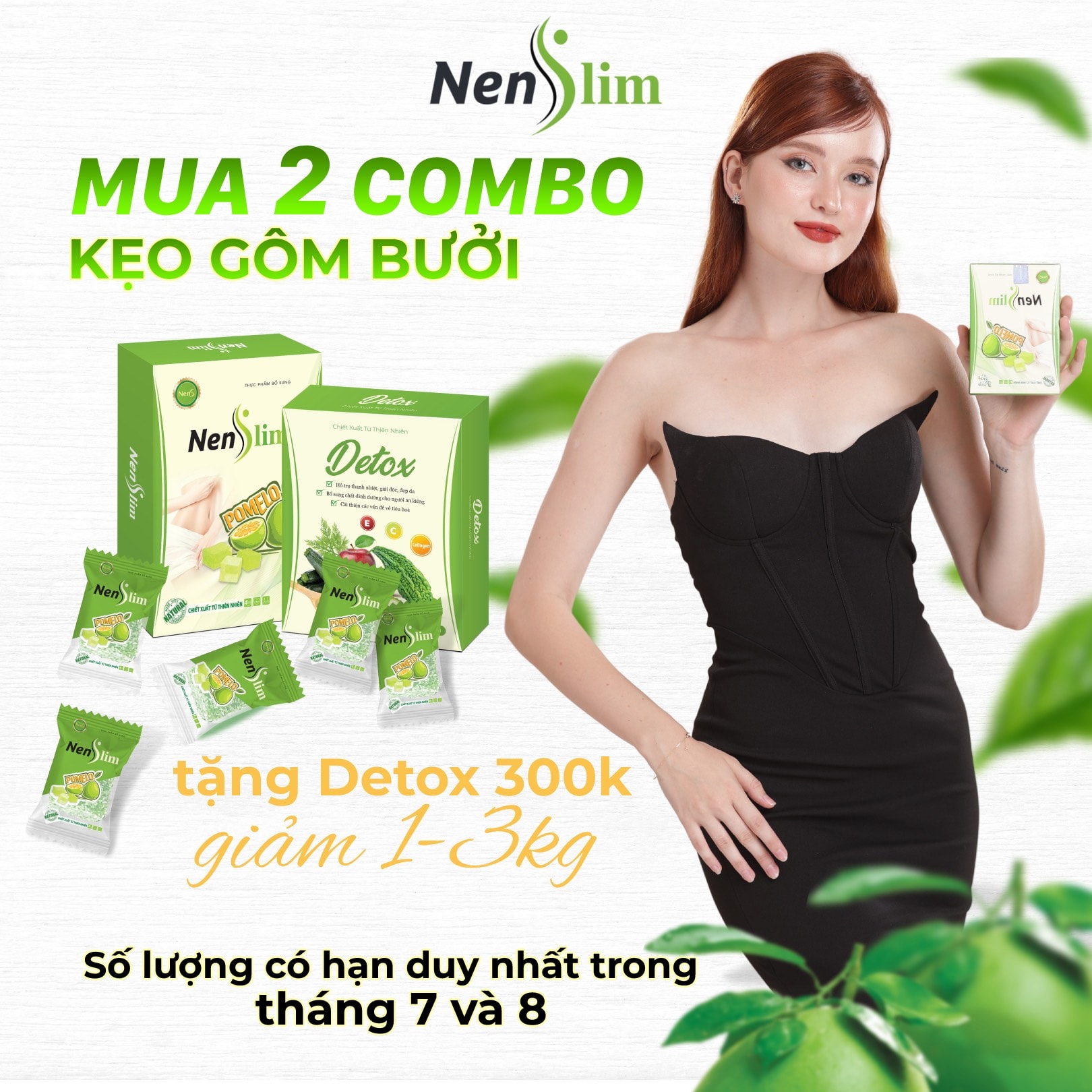 - Khi mua 1 hộp Kẹo gôm bưởi giảm cân Nen Slim 298k + miễn ship + tặng ngay 1 hộp detox khử mỡ